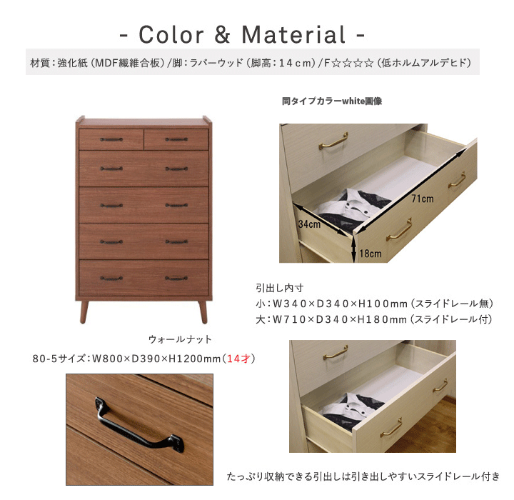 北欧・カントリー・ナチュラルstyleのかわいいチェストです 5段ウォールナット 5段ホワイト 5段ナチュラルチーク 4段ウォールナット 4段ホワイト 4段ナチュラルチーク